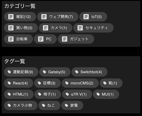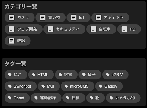 このブログはmicroCMSとGatsbyで構築しており、タグやカテゴリもmicroCMSのただのコンテンツの一種です。